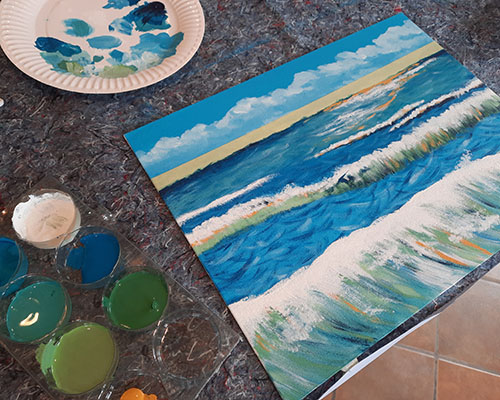 Wir tauchen ein in die faszinierende Welt von Vincent van Gogh. In diesem Malkurs widmen wir uns dem Motiv „Das Meer bei Les Saintes-Maries-de-la-Mer“. Van Goghs kräftige Pinselstriche und leuchtende Farben lassen das Wasser lebendig wirken – genau das wollen wir gemeinsam ergründen und gestalten.